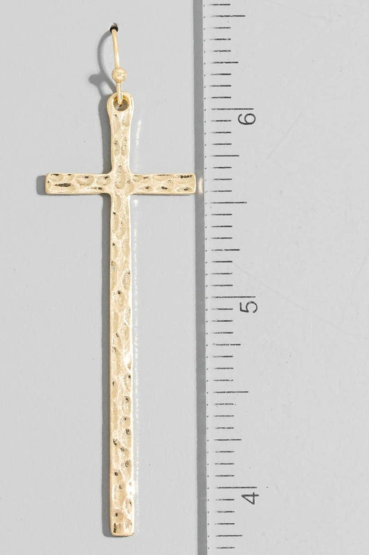 Hammered Long Cross Dangle Earrings
