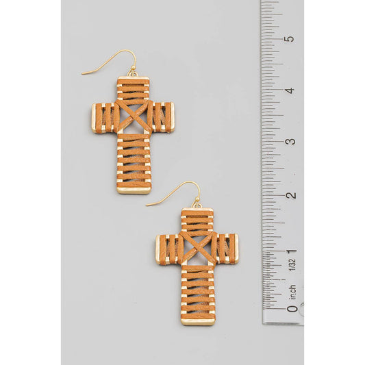 Faux Leather Wrap Cross Dangle Earrings