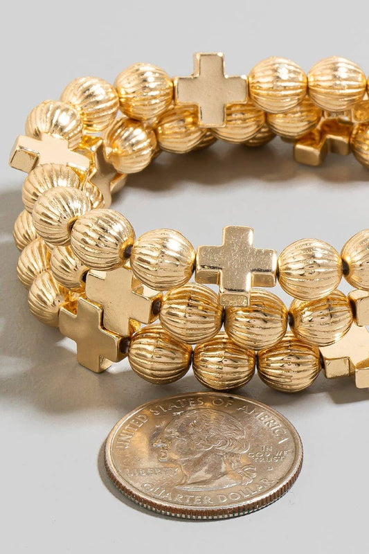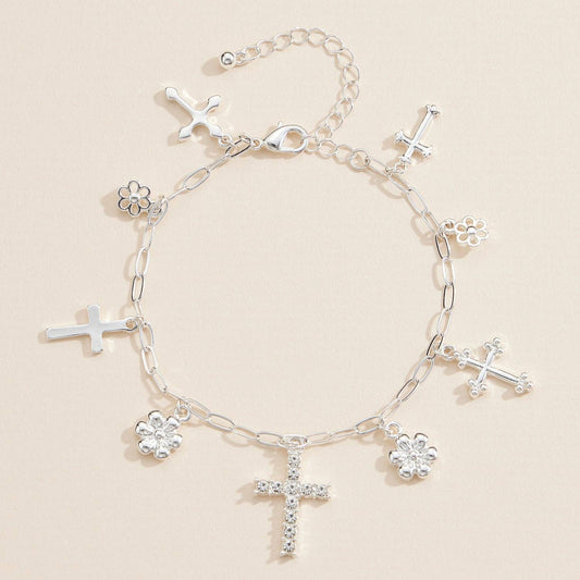 Gold & Silver Charm Bracelet with Cross & Floral Pendants